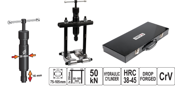 Bộ Vam Chặn Bi Thủy Lực 5 Tấn Yato YT-0609 – Sức Mạnh Thủy Lực, Tháo Lắp Chuyên Nghiệp