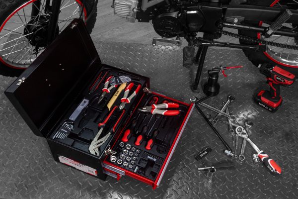 Sự khác biệt lớn nhất của Yato YT-38951 chính là sự bổ sung các món đồ nghề chuyên dụng như kìm bấm chết, mỏ lết và đa dạng các loại tua vít, đầu bit. Với thiết kế thùng sắt 5 ngăn mở rộng, bộ sản phẩm này giúp bạn tổ chức đồ nghề khoa học, nâng cao tối đa tốc độ làm việc.