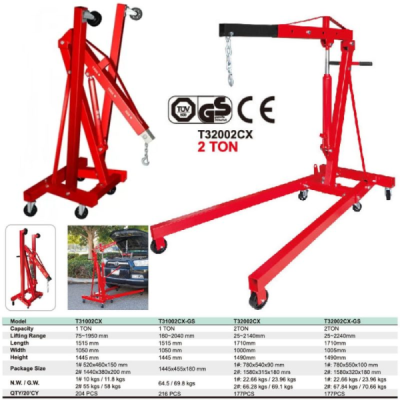 Cẩu móc động cơ 2 tấn Torin T32002CX-GS thiết kế khung thép chắc chắn, chân cẩu có thể gấp gọn tiết kiệm diện tích. Hệ thống thủy lực bền bỉ, an toàn chuẩn GS cho mọi Garage ô tô. Mua ngay giá ưu đãi!
