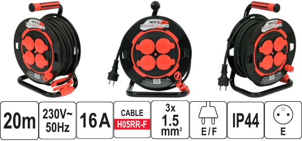 Thông số kỹ thuật cuộn dây điện Rulo 20M lõi đồng 3Gx1.5 mm² Yato YT-81052- Ba Lan