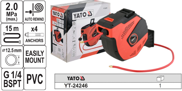 Cuộn Dây Hơi Tự Rút Yato YT-24246 – Lõi Siêu Lớn 12.5mm, Chuyên Dụng Cho Thiết Bị Hạng Nặng