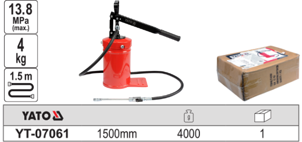 Thông số kỹ thuật của máy bơm mỡ dùng tay 4Kg 13.8Mpa Yato YT-07061:
