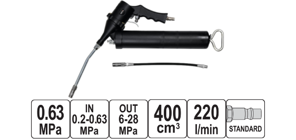 Thông số kỹ thuật của súng bơm mỡ khí nén 400cc 28Mpa Yato YT-07057:
