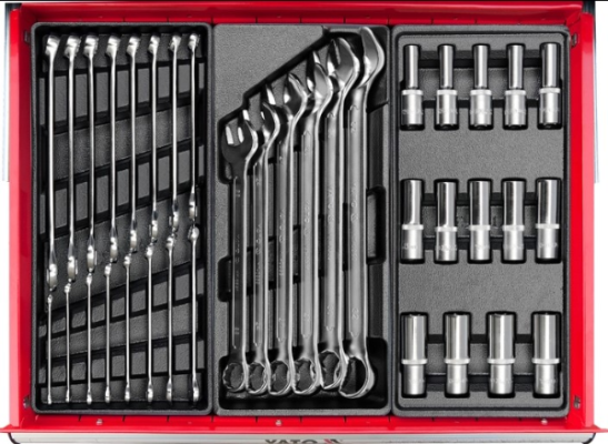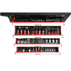 Tủ dụng cụ Yato YT-55300 gồm 6 ngăn kéo với 177 món dụng cụ chuyên nghiệp (cờ lê, tuýp, tô vít, kìm…). Thiết kế chống lật, ray trượt bi chịu tải nặng, mặt bàn chống trượt. Giải pháp 5S hoàn hảo cho Garage ô tô. Hàng chính hãng Yato Ba Lan. Mua ngay tại Multitech!